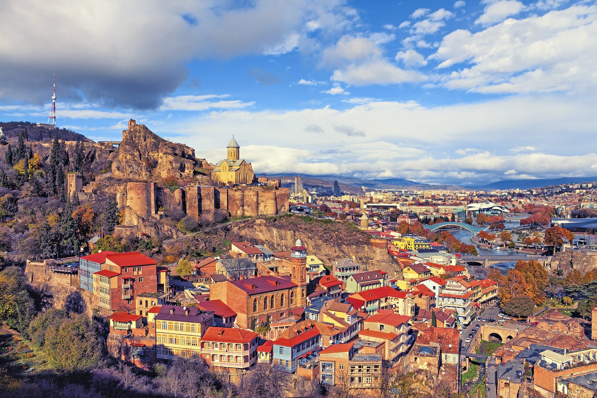 Am Morgen erkunden Sie Tiflis zu Fuss. Sie starten mit der aus dem 13. Jahrhundert stammenden Metechi Kirche. Die Kirche wurde im Auftrag von König Dimitri II gebaut und steht auf dem Gelände der früheren Residenz der georgischen Könige. Weiter geht es zum Bezirk der Schwefelbäder, ein Wahrzeichen von Tiflis. Auch der Name der Stadt wird von den Bädern hergeleitet, denn Tbilissi (Tiflis) bedeutet «Stadt der warmen Quellen». Danach schlendern Sie durch die engen Strassen der bezaubernden Altstadt, wo sich viele kleine Cafés und gemütliche Restaurants befinden und Sie sehen die moderne «Friedensbrücke». Im Anschluss besuchen Sie das «Simon-Dschanaschia Nationalmuseum», das in seiner Schatzkammer eine wertvolle Sammlung georgischer Kunstschätze präsentiert.