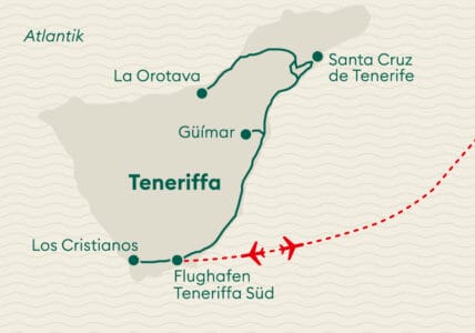 Entdecken Sie die Vielfalt Teneriffas von Güimar bis Costa Adeje. Besichtigen Sie historische Stätten in Candelaria und La Laguna, erkunden Sie das lebendige Treiben in Santa Cruz und entspannen Sie an den Stränden von Puerto de la Cruz und Costa Adeje. Geniessen Sie atemberaubende Ausblicke in La Orotava und Masca, entdecken Sie charmante Dörfer wie Garachico und Icod de los Vinos. Erleben Sie die majestätischen Klippen von Los Gigantes und die natürliche Schönheit von Buenavista del Norte.