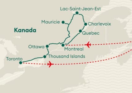 Den Westen der USA entdeckenHier schlägt das Herz unbeirrt im Takt von Mutter Natur! Gipfel, von Schnee bedeckt, beeindruckende Wasserfälle, dicht bewachsene Regenwälder und kilometerlange Strände – hier kommen Outdoor-Fans auf ihre Kosten. Voll im Trend liegen auch Kanadas moderne Grossstädte wie Vancouver, Montreal oder Toronto. Die Kanadier sind bekannt für ihre offene und freundliche Art. Die Vorzeichen für eine unvergessliche Kanadareise stehen gut.