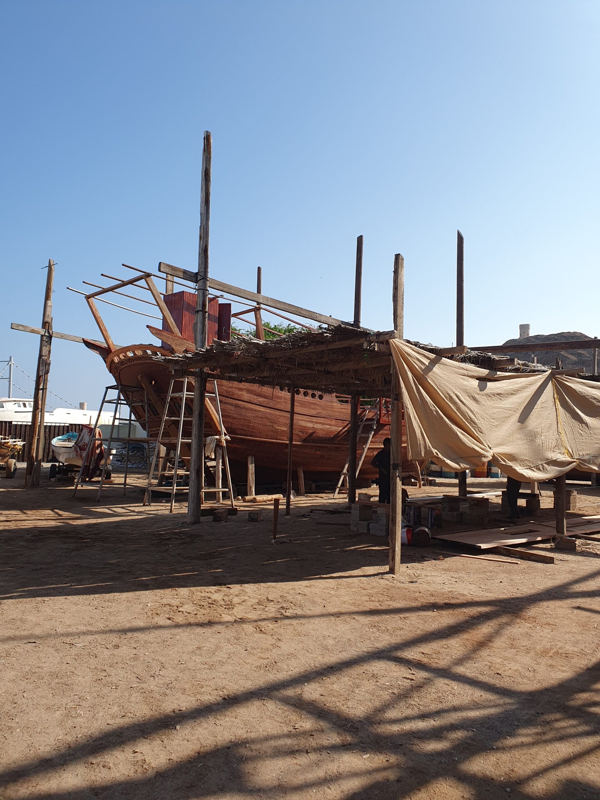 Heute erlebten wir das persönliche Highlight unserer Reise: die Fahrt in die Wahiba Sands. Auf dem Weg dorthin hielten wir zunächst bei einer traditionellen Dhow-Werft, wo wir den Handwerkern zusahen, wie sie die typischen arabischen Schiffe und Möbel kunstvoll von Hand fertigen. Weiter ging es zum Wadi Bani Khalid, einer malerischen Oase, wo wir eine kurze Erfrischungspause einlegten und die Gelegenheit für eine Limonana natürlich nicht ausliessen konnten. Kurz vor der Wüste liessen wir die Luft aus den Reifen der Geländewagen und die abenteuerliche Fahrt in die beeindruckenden Dünen der Wahiba Sands begann. Dort erlebten wir einen spektakulären Sonnenuntergang und genossen später ein köstliches Abendessen im wunderschönen Desert Nights Camp.