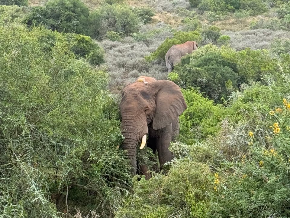 Schon auf dem Weg zur Lodge begegneten wir einer Elefantenherde – ein eindrücklicher Moment direkt aus dem Mietwagen. Zwei Nächte verbrachten wir im privaten Amakhala Nationalpark: erst in der Woodbury Lodge, dann im HillsNek Safari Camp. Vier Game Drives führten uns durch Savannen und Buschlandschaften – mit Sichtungen von Löwen, Giraffen, Elefanten und mehr. Die Lodges waren komfortabel und persönlich – das gemeinsame Essen mit Gästen aus aller Welt ein echtes Highlight.