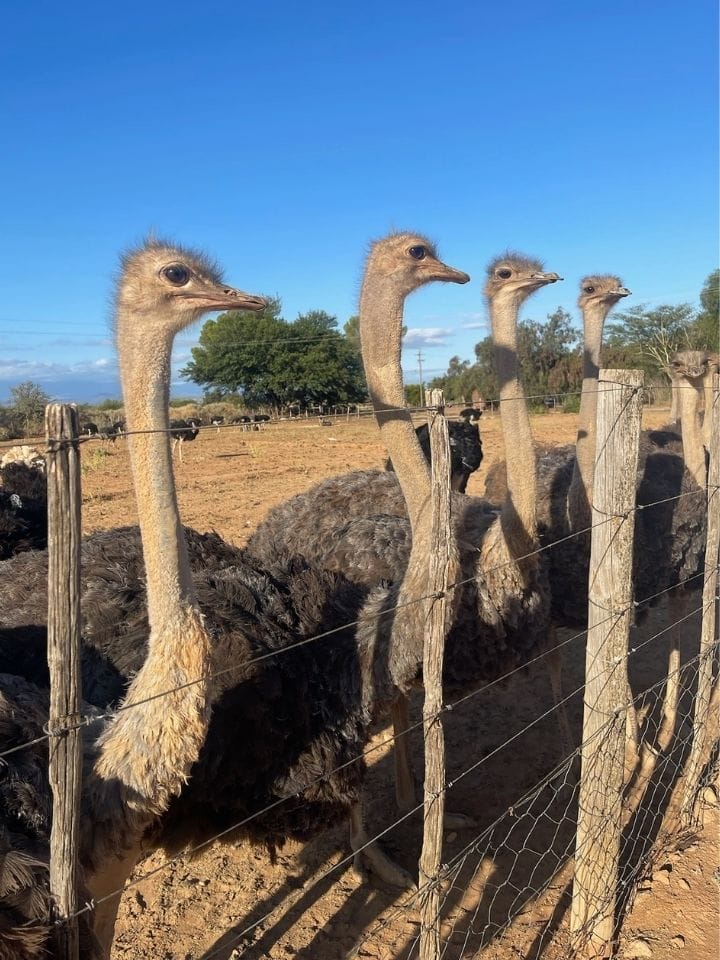 Nach einem kurzen Stopp an den Knysna Heads – spektakuläre Felsformationen an der Lagunenmündung – ging es weiter über Wilderness nach Oudtshoorn. In der trockenen Halbwüste der Klein Karoo wartete das Mooiplaas Guest House mit echter Gastfreundschaft. Gastgeber Andrei empfing uns so herzlich, dass wir uns sofort zuhause fühlten. Besonders spannend war die private Tour über die hauseigene Straussenfarm – inklusive Fütterung und süsser Straussenküken.