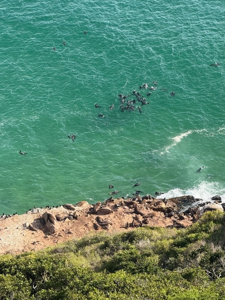In Plettenberg Bay bezogen wir die charmante Christiana Lodge – ideal, um nachmittags am Pool zu entspannen. Am nächsten Morgen stand das absolute Wanderhighlight an: das Robberg Nature Reserve. Die rund fünfstündige Tour war abwechslungsreich und bot atemberaubende Aussichten aufs Meer, bizarre Felsformationen – und Robbenkolonien aus der Vogelperspektive. Achtung: Wetterumschwünge sind hier keine Seltenheit!