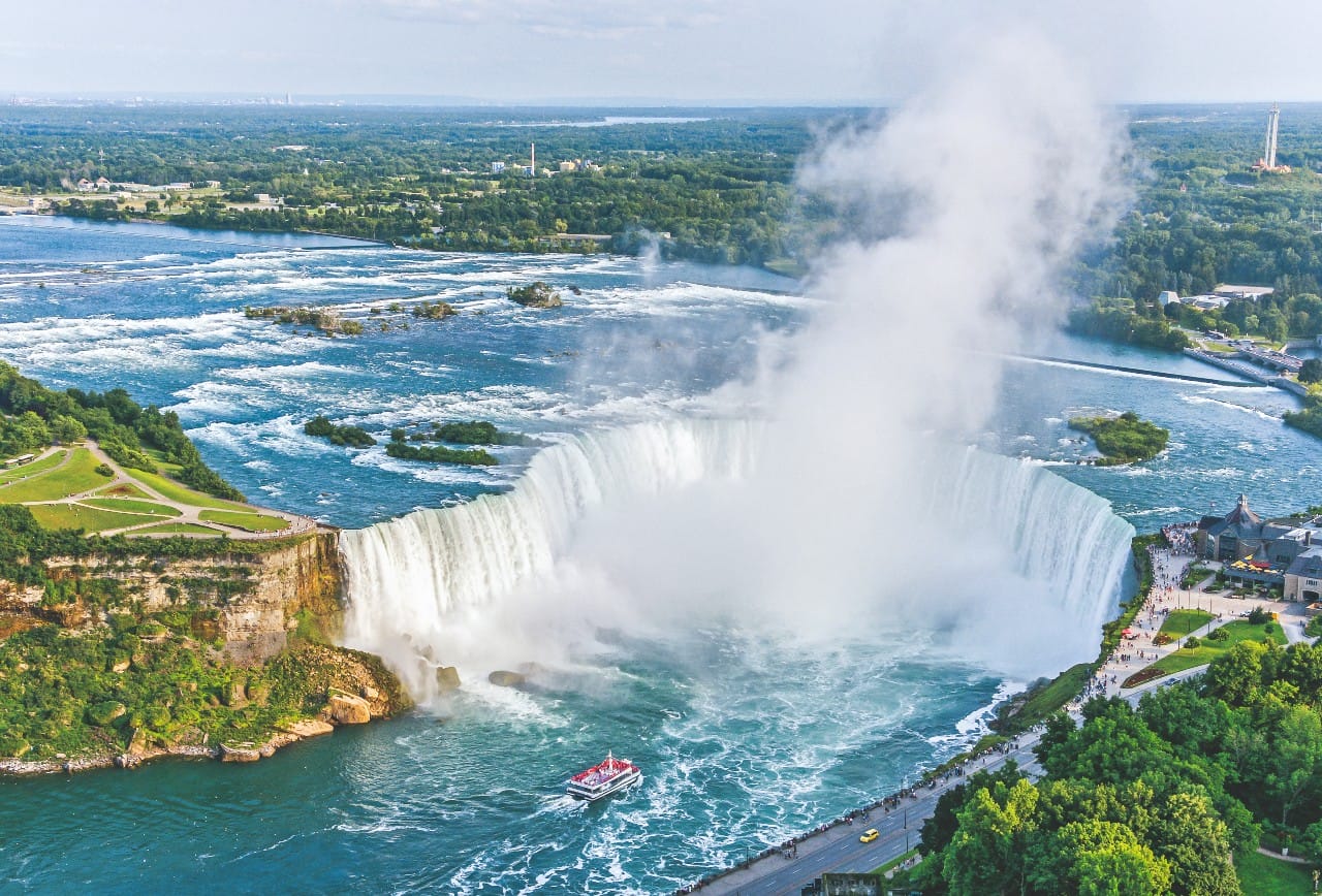 Ein weiterer Höhepunkt der Ostkanada-Rundreise sind die Niagara-Fälle. In der Sprache der Ureinwohner bedeutet Niagara «donnerndes Wasser». Und der Name hält, was er verspricht! So hört man die Wasserfälle, die eine natürliche Grenze zwischen Kanada und den USA bilden, schon lange bevor man sie sieht. Kein Wunder – pro Sekunde stürzen über zwei Millionen Liter Wasser in die Tiefe. Der Anblick der gewaltigen Wassermassen, die wie flüssiges Glas über die Fallkante rauschen, ist ein Naturschauspiel der Extraklasse. Auf einem Boot nähern Sie sich durch die Gischt der tosenden Kaskade – ein einzigartiges Erlebnis! Auge in Auge mit der Ehrfurcht einflössenden Wasserwand kommt man sich als Mensch ziemlich klein und nichtig vor.