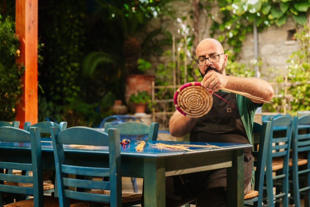 Das Leben von Petros Nikolau nahm von einem Tag auf den anderen eine unerwartete Wendung: Petros stellte an einem Festival das zypriotische Korbflecht-Handwerk vor, wie es ihm einst seine Grosseltern beigebracht hatten. Da fragte ihn eine Touristikerin, ob er diese Tradition nicht einer Reisegruppe präsentieren könne. Petros sagte zu und die Touristen waren begeistert. Ein halbes Jahr später erhielt Petros bereits regelmässig ähnliche Anfragen. Deshalb kündigte er nach 18 Jahren in einem Fünfsternehotel seinen sicheren Job als Restaurantleiter. Er machte sich selbstständig und seine Berufung zum Beruf. Seit 2014 engagiert er sich voll und ganz für das handwerkliche Erbe seiner Grosseltern und teilt das alte Wissen mit viel Leidenschaft mit der Welt.