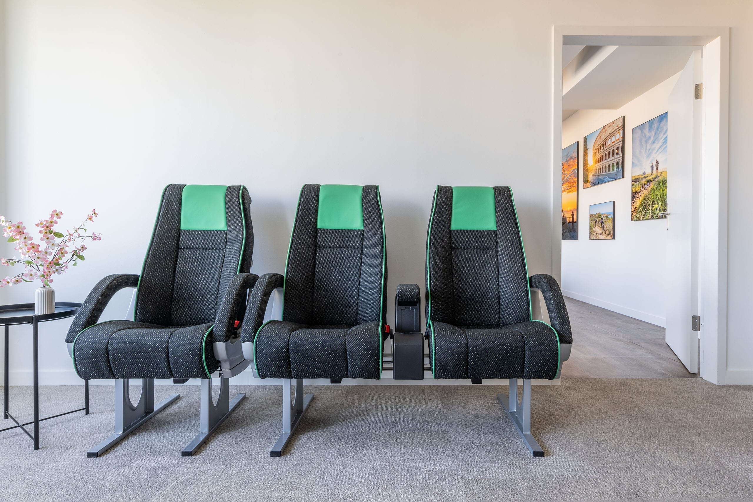 Beim Eingang zur Travel Lounge stehen die luxuriösen Sitze unserer Twerenbold Königsklasse-Luxusbusse für Sie bereit. Erleben Sie den erstklassigen Komfort.